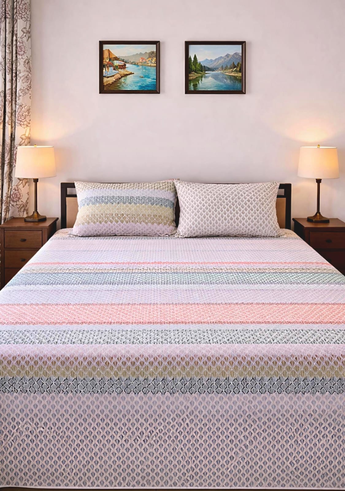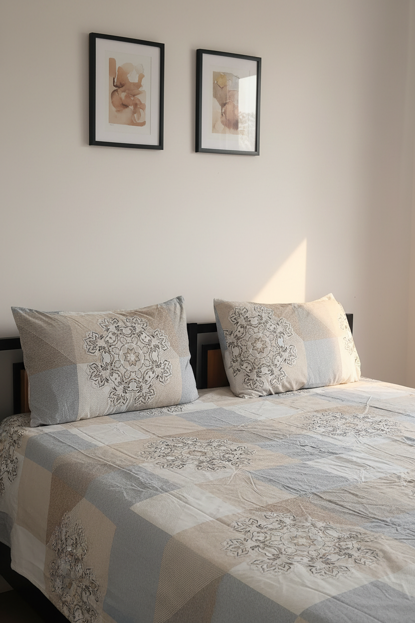 PRINTED DOUBLE BEDSHEETSInvest in luxurious sleep with our Preocion dyed, fade-resistant double bedsheets. Enjoy unmatched comfort and color retention.