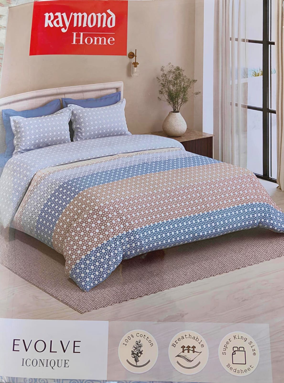 PURE COTTONRAYMOND HOME EVOLVE ICONIQUE COLLECTION - 100% COTTON SUPER SIZE BEDSHEET WITH 2 PILLOW COVERS AT JUST RS. 2500.